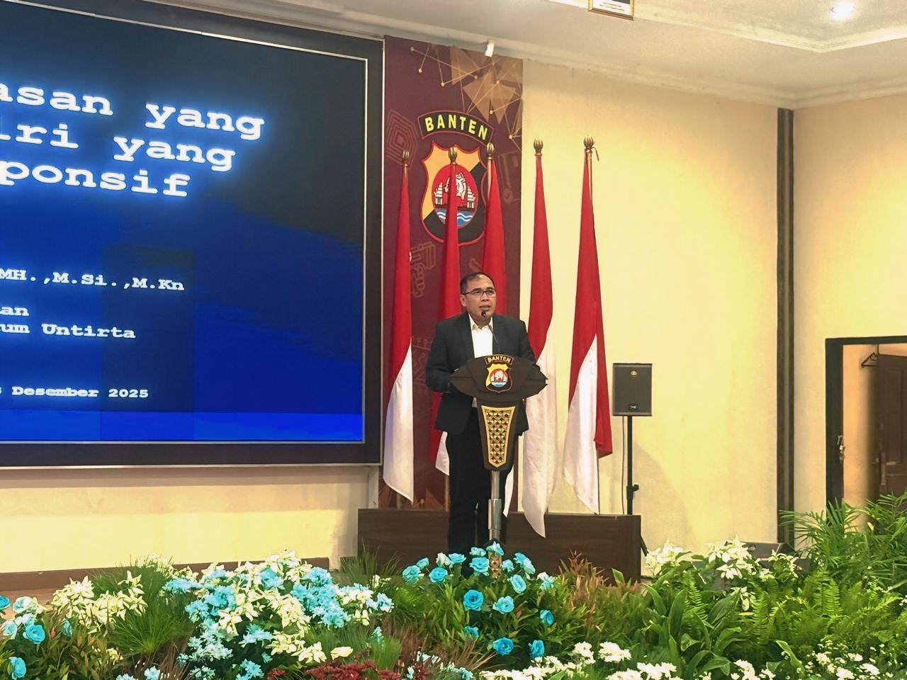 Banten — 03 Desember 2025. Rektor Universitas Banten Jaya (UNBAJA), Dr. Dadang Herli Saputra, S.IP., SH., SS., MH., M.Si., M.Kn., menjadi pemateri dalam kegiatan Bimbingan Teknis (Bimtek) Pelayanan dan Pengawasan yang Akuntabel Menuju Polri yang Transparan dan Responsif yang diikuti oleh personel kepolisian dari berbagai satuan. Kegiatan ini bertujuan memperkuat pemahaman dan kapabilitas anggota Polri dalam memberikan pelayanan publik yang profesional, transparan, serta memiliki standar pengawasan yang akuntabel sesuai tuntutan perkembangan masyarakat modern. Materi oleh Rektor UNBAJA: Penguatan Sistem, Etika, dan Transparansi Sebagai pemateri utama, Rektor UNBAJA menyampaikan materi mengenai:…
