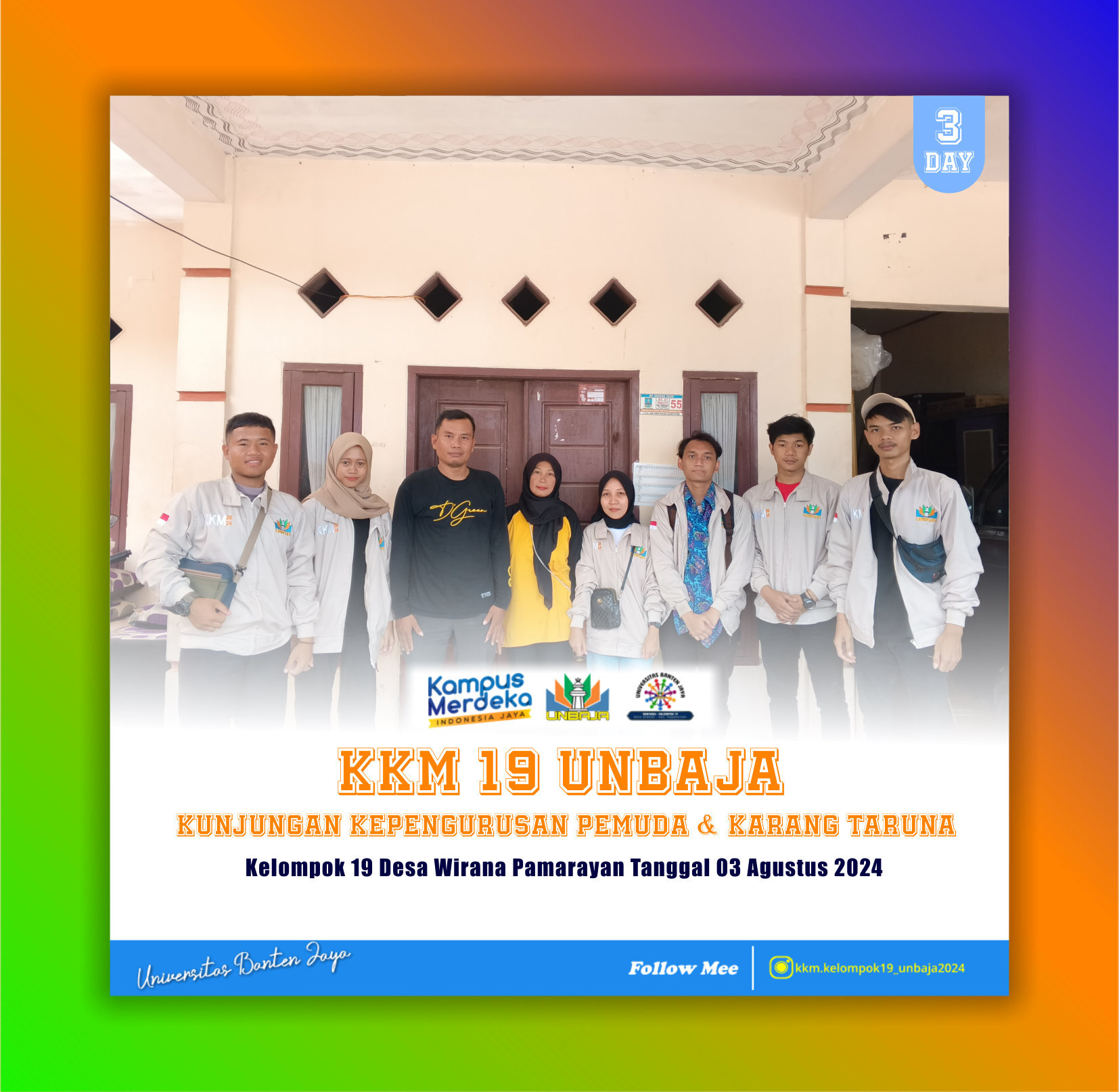 Pada hari Jumat, 2 Agustus 2024. Kami mahasiswa kelompok 19 KKM 2024 dengan membawa semangat “Sinergitas Dalam Membangun Desa” kami berkesempatan mengunjungi kantor kepala Desa Wirana untuk memperkenalkan Kelompok 19 kepada perangkat desa. Kami bertemu dengan, Kepala Desa Bapak Rohman, Sekretaris Desa Bapak Habibi, Kasie Pemerintahan Bapak Ahmad Zaelani Rahmat, BABINSA dan BABINKABDIMAS Desa Wirana yang menyambut baik kegiatan KKM Unbaja 2024 di Desa Wirana. Bapak Ahmad Zaelani Rahmat mengungkapkan perasaan bahagianya “Dengan adanya kegiatan KKM di Desa Wirana tahun ini, saya ingin agar para warga bisa termotivasi untuk mementingkan…