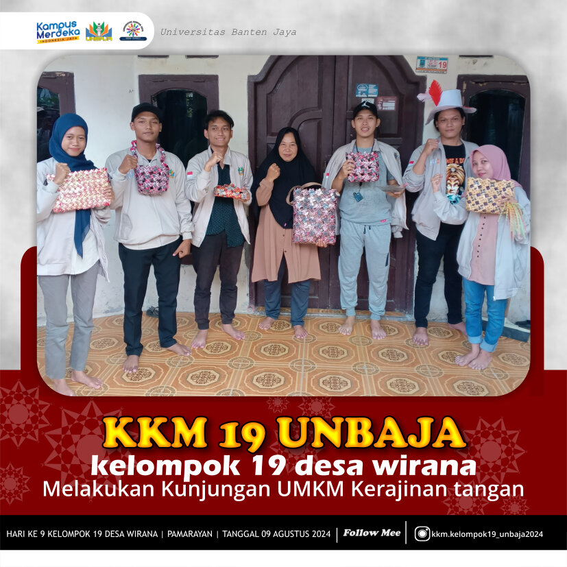 Hari Ke 9 Kuliah Kerja Mahasiswa (KKM) UNBAJA Kelompok 19 Dukung Pengembangan UMKM Kerajinan Tangan di Desa Wirana Serang, 9 Agustus 2024 – Mahasiswa Universitas Banten Jaya (UNBAJA) yang tengah menjalani program Kuliah Kerja Mahasiswa (KKM) di Desa Wirana, Kecamatan Pamarayan, Kabupaten Serang, berinisiatif untuk mendukung pengembangan Usaha Mikro, Kecil, dan Menengah (UMKM) kerajinan tangan. Program ini bertujuan untuk meningkatkan kreativitas dan keterampilan masyarakat setempat serta memberikan kontribusi nyata bagi perekonomian desa. Selama beberapa minggu terakhir, para mahasiswa telah aktif melakukan berbagai kegiatan pelatihan dan pendampingan. Fokus utama dari program…