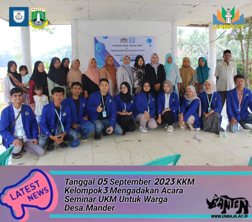 pada Selasa tanggal 05 September 2023 kami kakak-kakak mahasiswa universitas Banten jaya dari kelompok3 dan PDL kami ibu.Lona Noviani.SE.MM bersama-sama mengajak warga untuk mengikuti acara seminar yang kami adakan untuk lebih membuka pikiran, wawasan bahwasanya berbisnis sangatlah muda di zaman moderen seperti sekarang ini,sangat di untungkan bagi yang mau atau baru buka usaha, karena sekarang zamannya internet bisa terhubung kapanpun dan dimana pun dengan muda dan cepat,dan KKM Kelompok3 juga member informasi seputar pengemasan produk juga Lebel untuk produk yang ingin di jual supaya terlihat lebih menarik dan lebih memiliki nilai jual lebih tinggi,dan kami berharap dengan di adakannya acara seminar UKM ini bisa lebih meningkatkan kualitas taraf hidup masyarakat desa.mander.