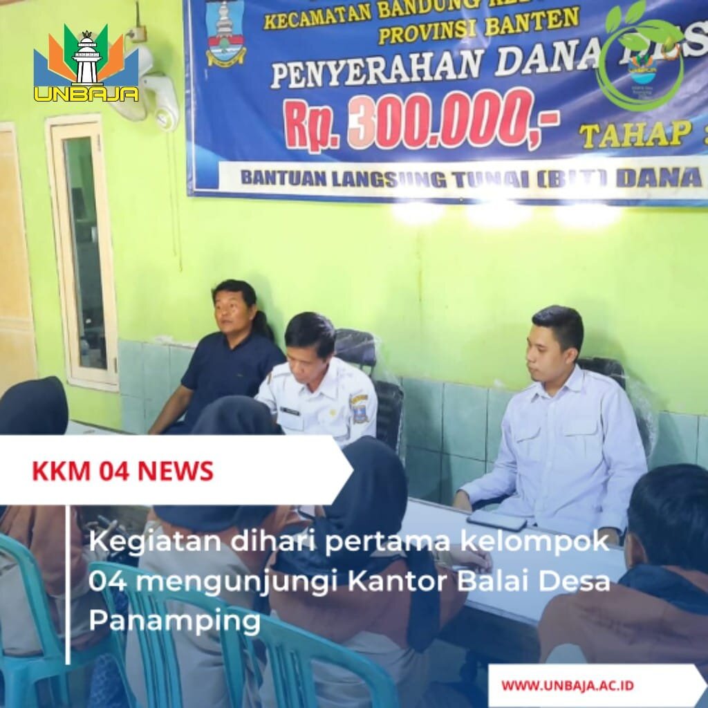Serang 15/07/2023 Peran mahasiswa terhadap pengembangan desa sangat diperlukan, untuk itu kali ini mahasiswa UNBAJA melaksanakan kegiatan KKM di desa Panamping, Kecamatan Bandung, Kabupaten Serang dengan rencana kerja yang terprogram dengan baik dan disesuaikan dengan potensi yang ada di desa. Anggota KKM kelompok 4 mengadakan pertemuan rapat bersama DPL untuk membahas program kerja KKM , rapat dilaksanakan pada pukul 09.00 WIB – selesai. Dalam rapat kali ini DPL membahas dan mengoreksi semua ide yang di tuangkan oleh anggota kelompok agar dalam pelaksanaan KKM berjalan sesuai proker yang di sepakati bersama…