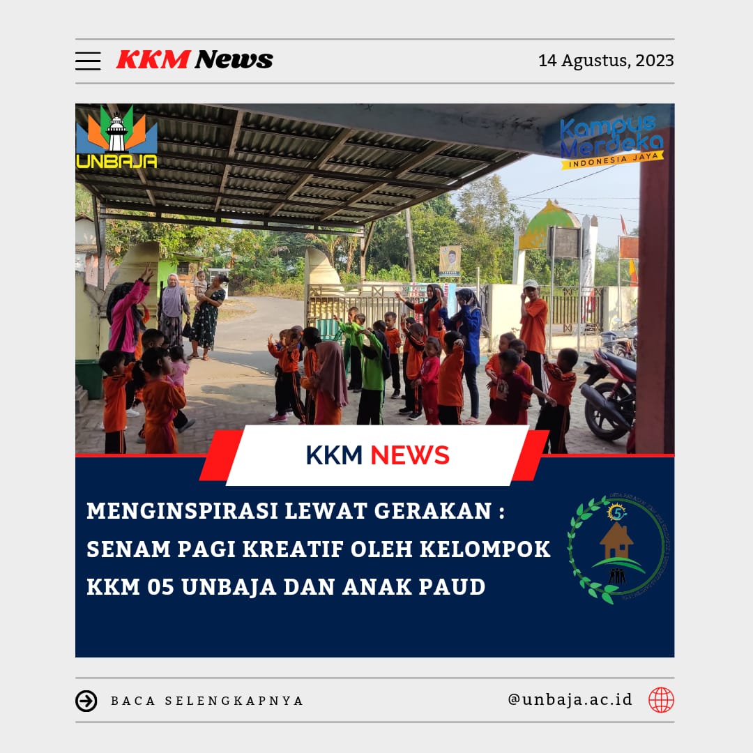 SERANG, 14/08/2023 – Dalam upaya untuk mendorong gaya hidup sehat dan menyenangkan, kelompok KKM 05 UNBAJA bekerja sama dengan PAUD setempat telah menggelar kegiatan “Senam Pagi Kreatif.” Kegiatan ini berfokus pada penguatan kesehatan fisik, interaksi sosial, dan menginspirasi anak-anak usia dini dalam lingkungan yang positif. Kegiatan senam pagi yang diadakan di PAUD ini telah menjadi perhatian utama dalam komunitas. Dengan semangat kolaborasi, mahasiswa dari kelompok KKM 05 UNBAJA bergabung bersama anak-anak PAUD untuk menjalani sesi senam yang energetik dan penuh keceriaan. Senam pagi ini tidak hanya mengenalkan gerakan-gerakan dasar, tetapi…