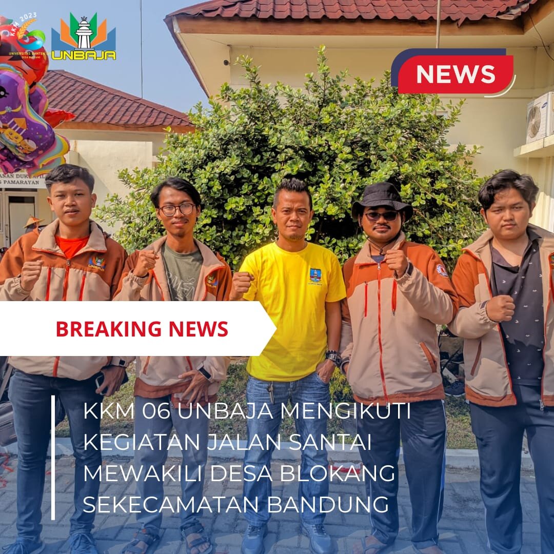 KKM 06 UNBAJA Mengikuti Kegiatan Jalan Santai mewakili Desa Blokang se-Kecamatan Bandung Serang, 15 Agustus 2023 – Kelompok Kuliah Kerja Mahasiswa (KKM) 06 Universitas Banten Jaya (UBJ) mengikuti kegiatan jalan santai mewakili Desa Blokang se-Kecamatan Bandung, Kabupaten Serang, Banten. Kegiatan ini diselenggarakan oleh Dinas Kecamatan Bandung Kabupaten Serang pada hari Minggu, 15 Agustus 2023. Peserta jalan santai berasal dari berbagai desa di Kecamatan Bandung, mulai dari desa terkecil hingga desa terbesar. Kelompok KKM 06 UNBAJA yang terdiri dari 10 mahasiswa perwakilan dari berbagai program studi di UBJ, turut berpartisipasi dalam…