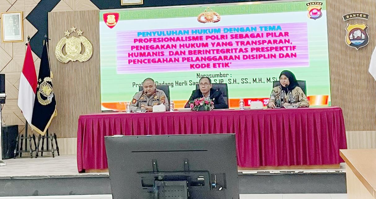 Tangerang — Polresta Tangerang menyelenggarakan penyuluhan hukum bertema “Profesionalisme Polri sebagai Pilar Penegakan Hukum yang Transparan, Humanis, dan Berintegritas Perspektif Pencegahan Pelanggaran Disiplin dan Kode Etik” pada hari ini. Kegiatan berlangsung di aula utama Polresta Tangerang dan diikuti oleh personel dari berbagai satuan. Sebagai narasumber utama, Rektor Universitas Banten Jaya (Unbaja), Prof. Dadang Herli S., S.IP., S.H., S.S., M.H., M.Si., memberikan paparan komprehensif yang menggabungkan perspektif akademik dengan praktik profesional di lingkungan kepolisian. Keikutsertaan Unbaja tidak hanya memperkaya materi penyuluhan, tetapi juga memperkuat sinergi antara dunia akademik dan institusi penegak…