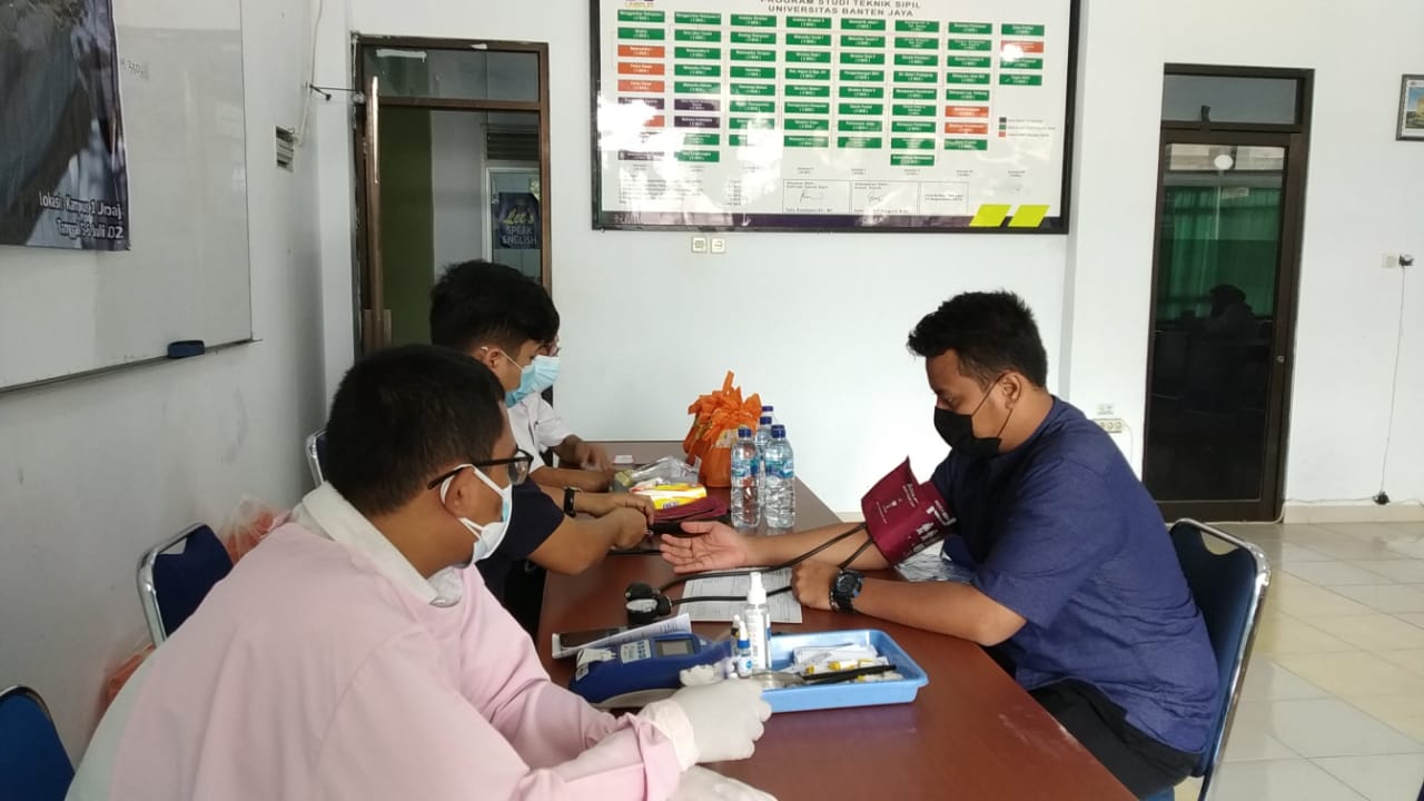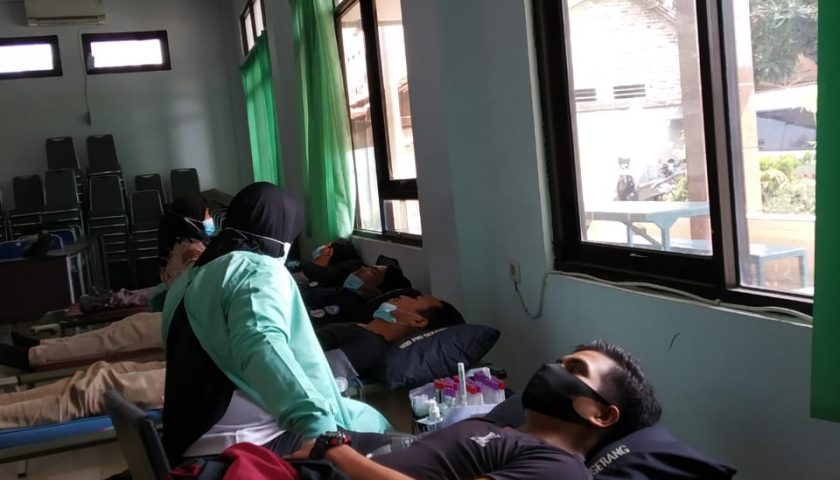 Korps Suka Rela (KSR) Palang Merah Indonesia (PMI) Universitas Banten Jaya (UNBAJA) mengajak sivitas akademika dan mahasiswa untuk melakukan donor darah, di UNBAJA, Selasa 6 Juli 2021.