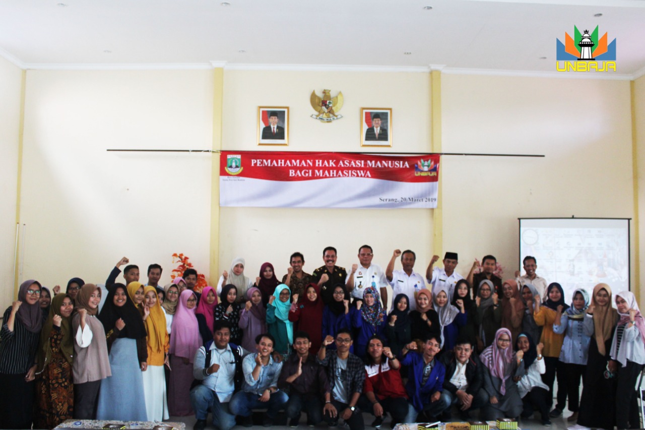 UNBAJA (20/3) Bertempat di auditorium UNBAJA kampus 1, Biro Hukum Setda Provinsi Banten melaksanakan Pembinaan Hak Asasi Manusia bagi Mahasiswa Universitas Banten Jaya, Rabu, 20 Maret 2019 yang diikuti oleh mahasiswa prodi Pendidikan Pancasila dan Kewarganegaraan.
