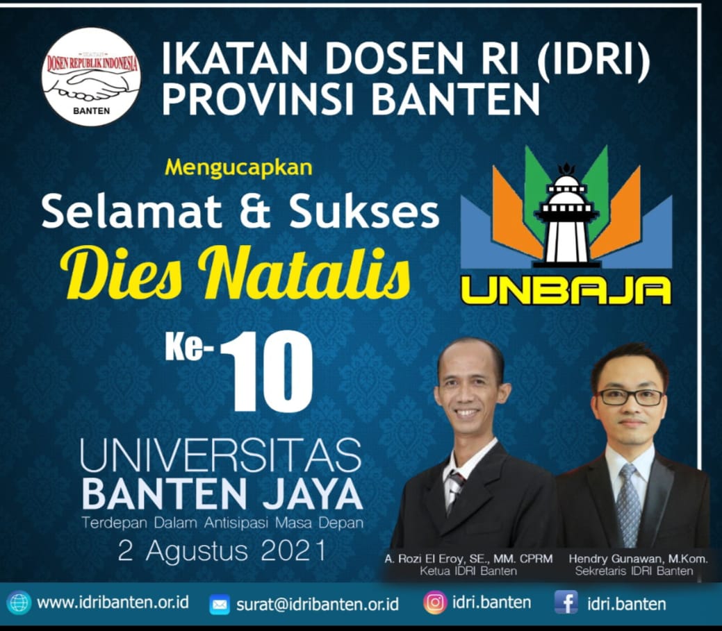 Kami keluarga besar Ikatan Dosen Republik Indonesia (IDRI) Banten mengucapkan Selamat hari Dies Natalis ke-10 bagi UNBAJA semoga semakin sukses, unggul dan berdaya saing di Banten. Semoga ke depan bisa lebih memproduksi karya-karya terbaik untuk bangsa, mampu mencetak lulusan yang semakin berkualitas, memiliki kompetensi dan integritas, serta terdepan dalam antisipasi Masa Depan”.