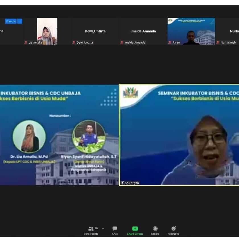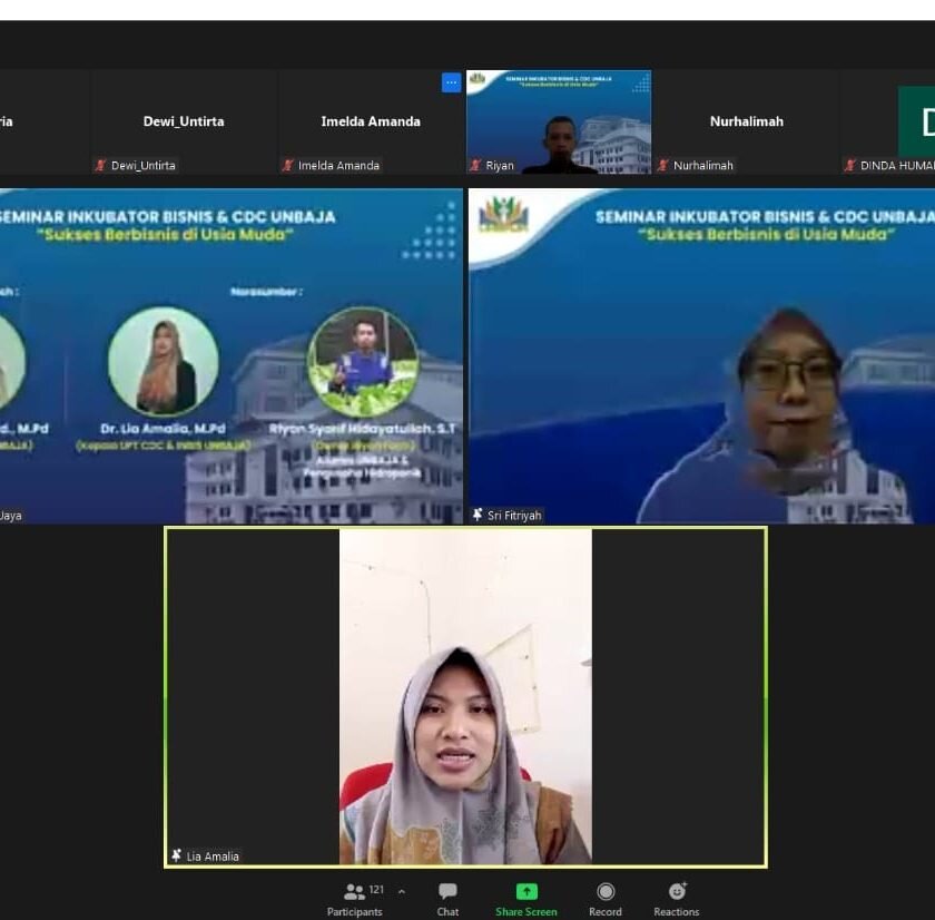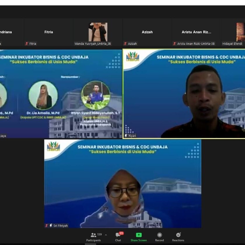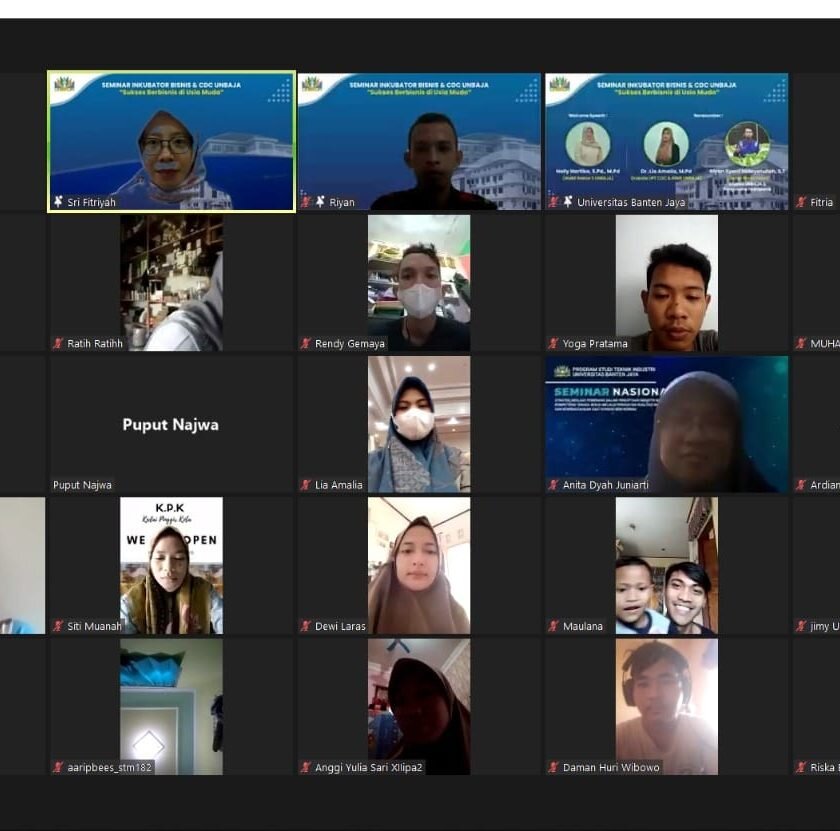 Serang – Untuk memberikan semangat dan motivasi bagi para mahasiswa untuk berwirausaha, Career Development Center dan Inkubator Bisnis (CDC-Inbis) Universitas Banten Jaya menyelenggarakan webinar bertema “Sukses Berbisnis di Usia Muda” secara daring melalu aplikasi zoom meeting.