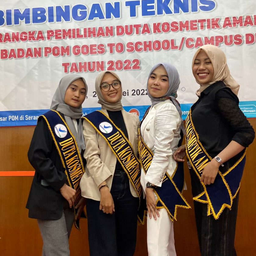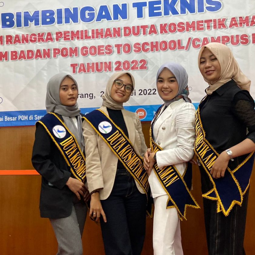 Serang,25/5/2022. Universitas Banten Jaya mengirimkan empat mahasiswa untuk mengikuti ajang pemilihan duta kosmetik yang diselenggarakan oleh BPOM di Serang pada Program Badan POM Goes to School And Campus di Provinsi Banten. Kegiatan ini bertempat di Hotel Wisata Baru, Jl. Maulana Yusuf No.16 Cimuncang, Kec. Serang, Kota Serang.