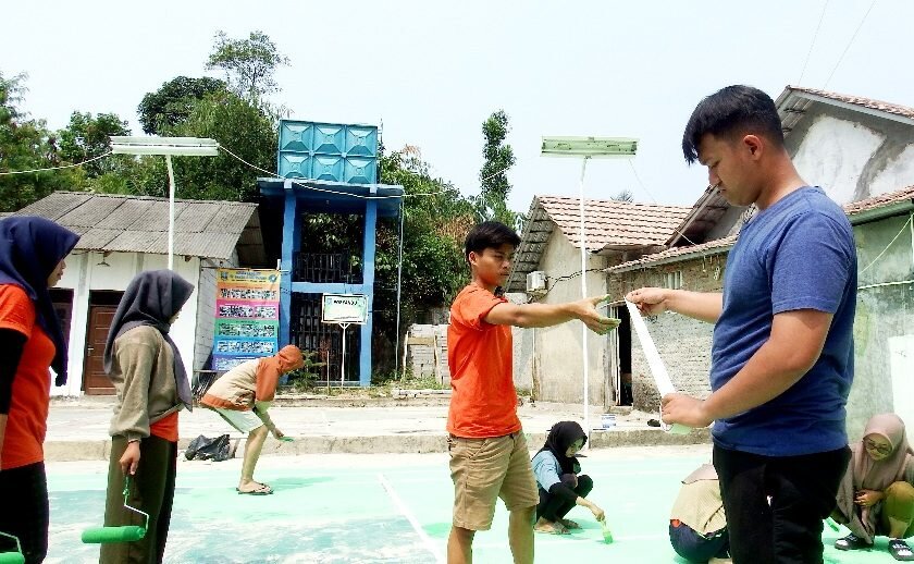 “Gotong royong merenovasi lapangan olahraga” : Desa Panamping Kecamatan Bandung.