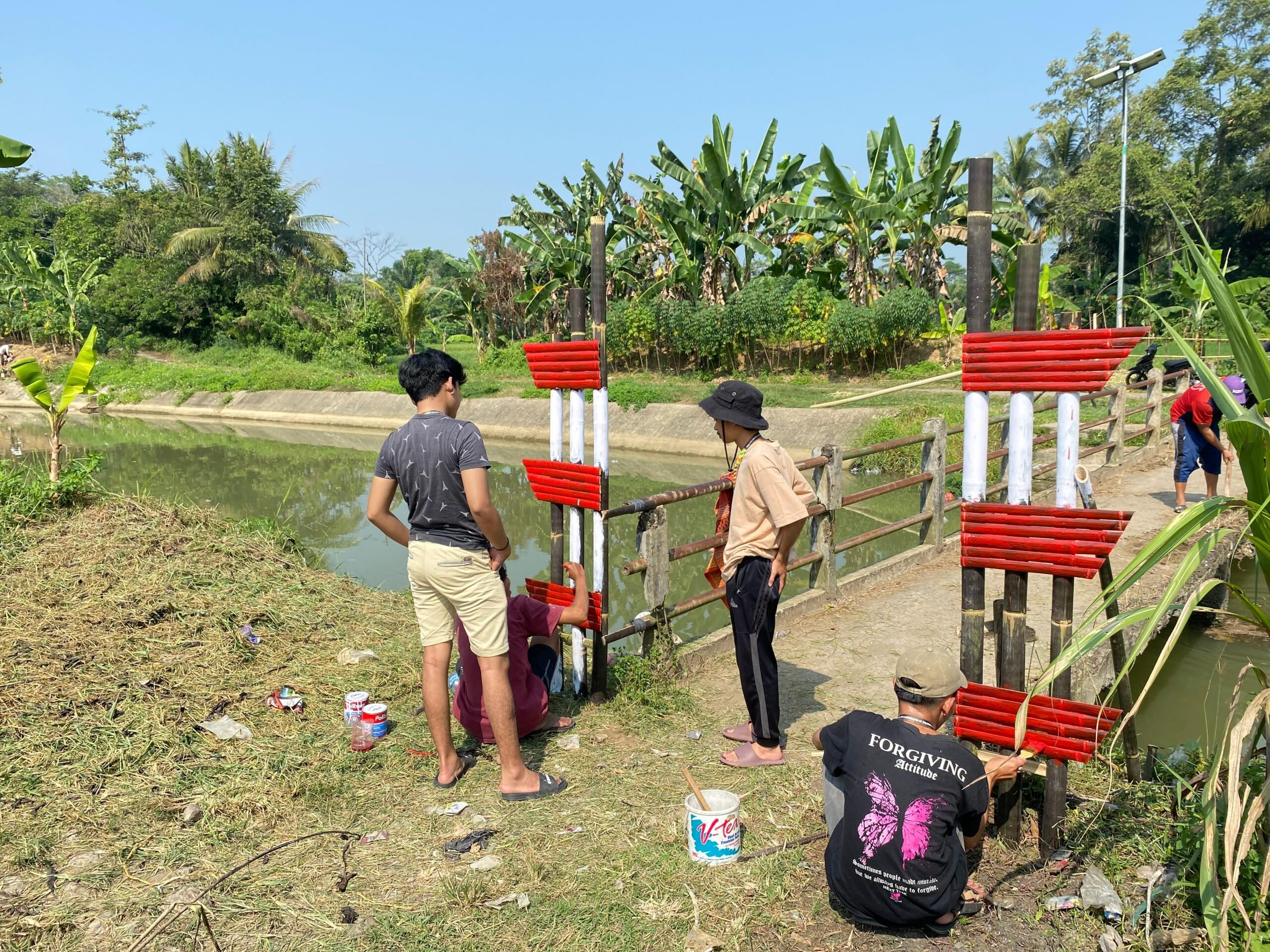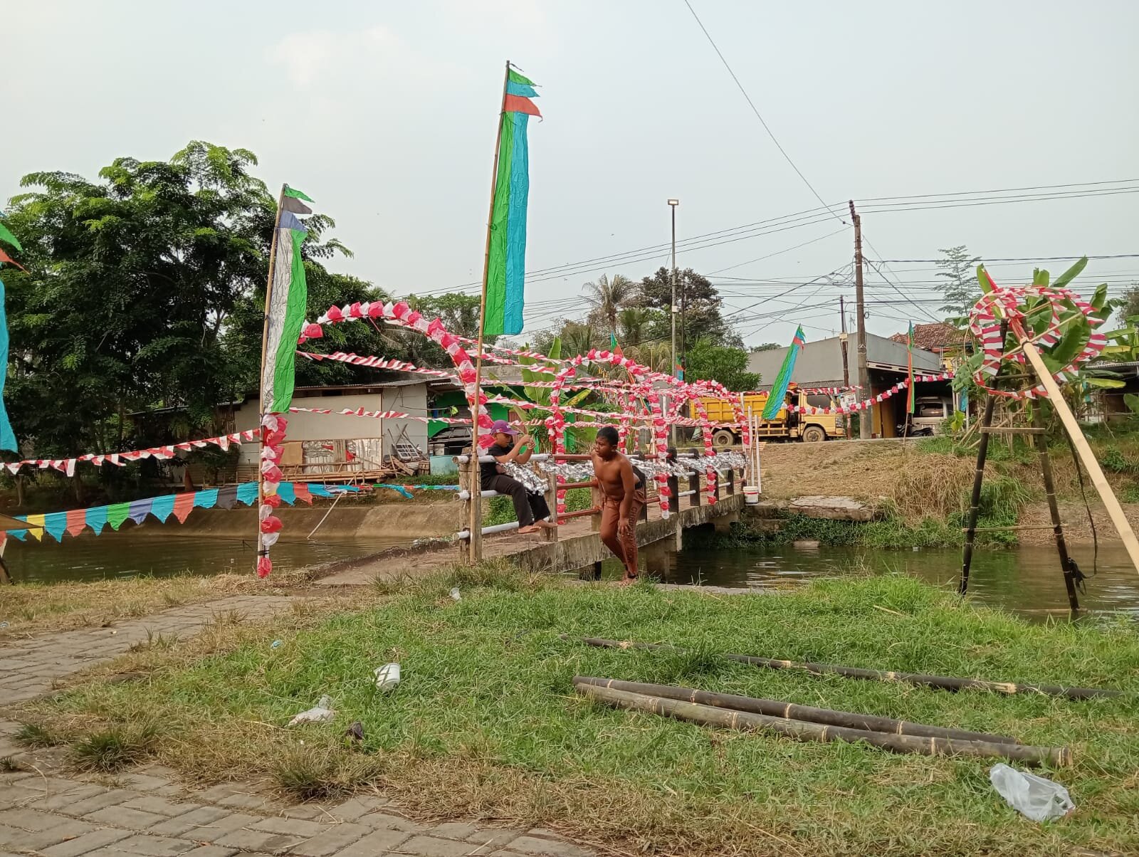 Selain itu, para pemuda dan anggota KKM UNBAJA juga menghias jembatan utama desa dengan bendera dan pernak-pernik lainnya. Jembatan yang sehari-hari menjadi penghubung warga ini kini terlihat lebih semarak dan penuh warna, menambah keceriaan dalam suasana perayaan.