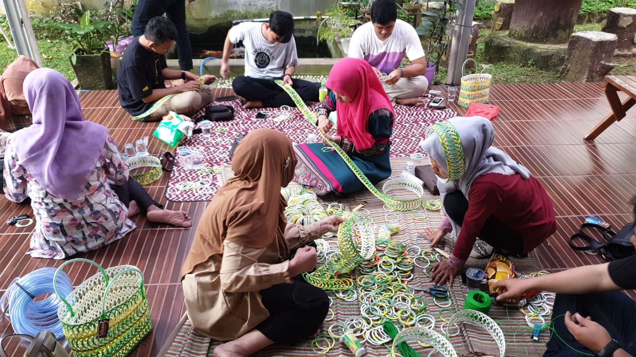 Sementara itu, instruktur pelatihan pembuatan handycrafts, Hj. Andy Ijah dari Luluana Handycarfts, Karangantu Banten, mengatakan, “Pemanfaatan bekas tutup teh gelas yang terbuat dari bahan plastik merupakan salah satu wujud kepedulian mahasiswa terhadap limbah plastik yang mengakibatkan polusi terhadap lingkungan. Namun jika dikelola lebih lanjut dapat memberikan nilai ekonomi dan meningkatkan taraf kesejahteraan bagi masyarakat. Dengan demikian limbah plastik yang selama ini dibuang dan tidak bermanfaat jika dikelola dengan baik terutama oleh mahasiswa dapat memberikan manfaat dan bernilai ekonomi”, ujarnya