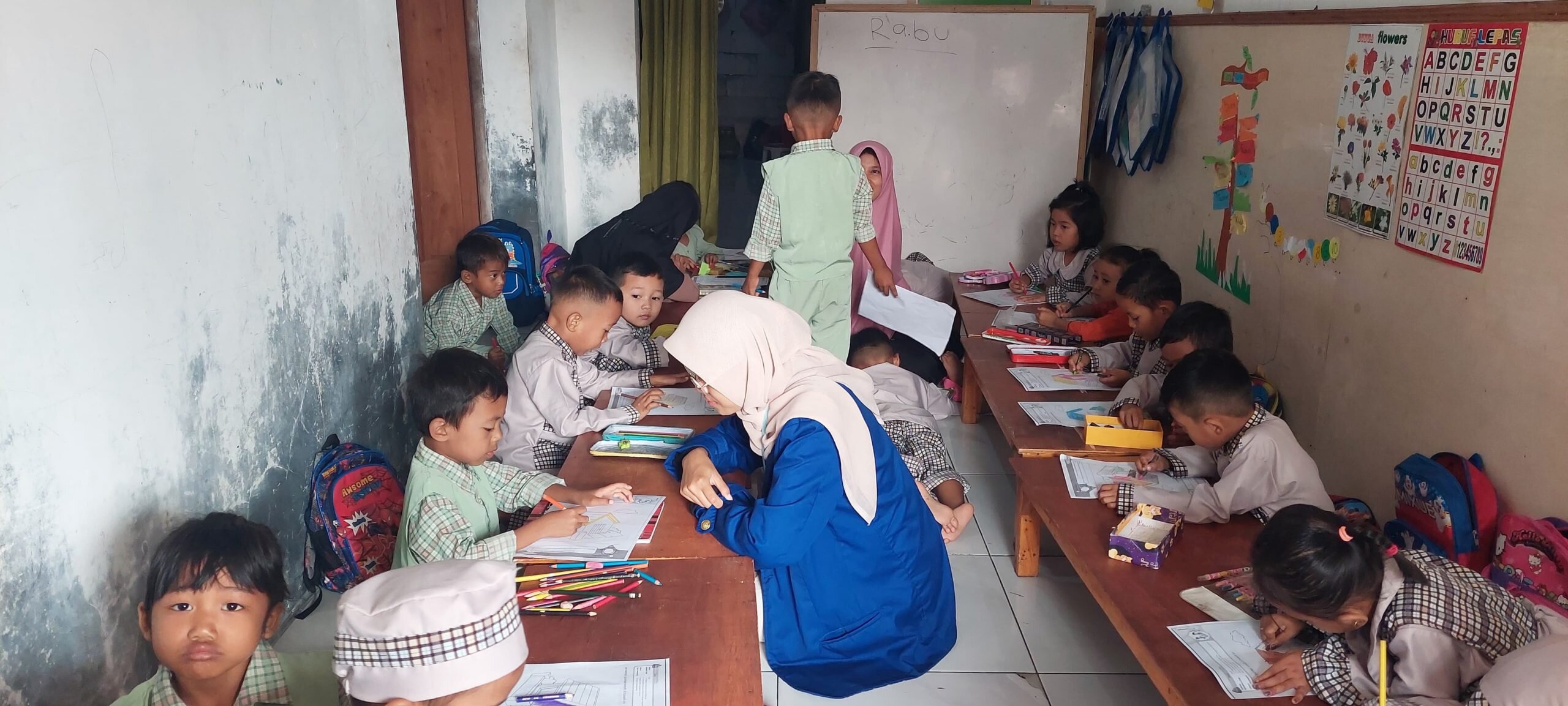 Ada tantangan dalam mengajar anak-anak Paud,harus lebih sabar dan lebih dekat lagi karena anak-anak akan lebih mudah mendengarkan arahan kita jika anak-anak tersebut sudah nyaman dengan kita, untuk pembelajaran karena masih paud,kita cukupkan mengenal dasar-dasar membaca,menulis,dan berhitung aja, selebihnya menggambar bebas sesuai imajinasi anak-anak untuk merangsang berfikir otak anak,dan menuangkannya dalam bentuk gambar sesuai dengan yang ada di dalam imajinasi mereka.