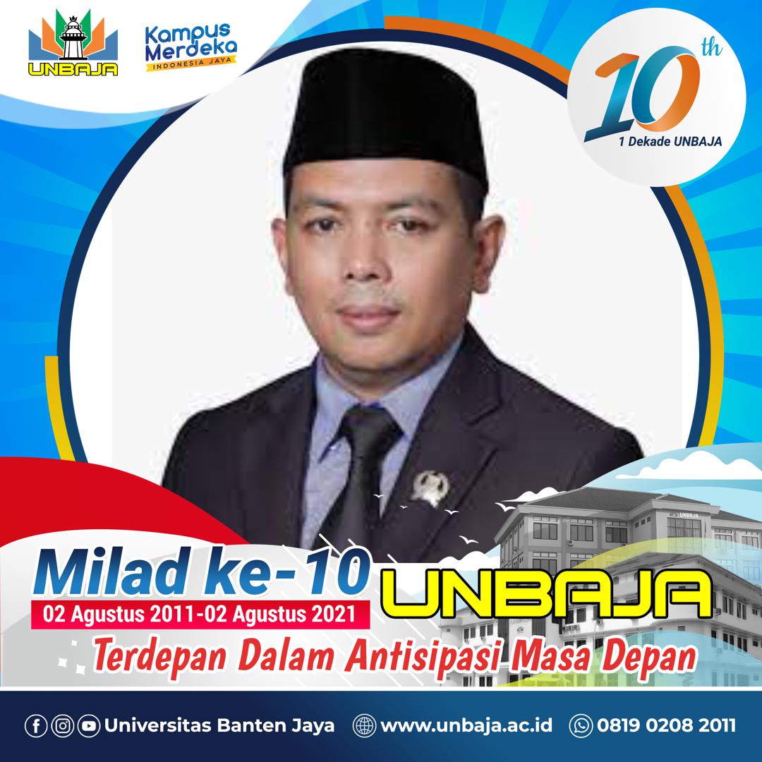 Saya mengucapkan selamat atas usia UNBAJA yang ke-10 semoga dapat mendorong Provinsi Banten menjadi Provinsi yang maju dan berkarakter. Ketua DPRD Provinsi Banten, Andra Soni.