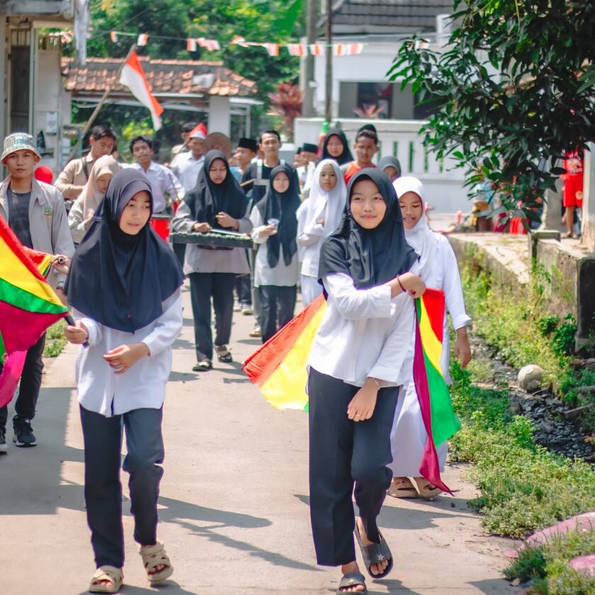 Kegiatan di mulai dengan penggibaran sang saka merah putih di pondok pesantren Salsabila, dilanjutkan dengan parade berkeliling kampung Babakan Mander