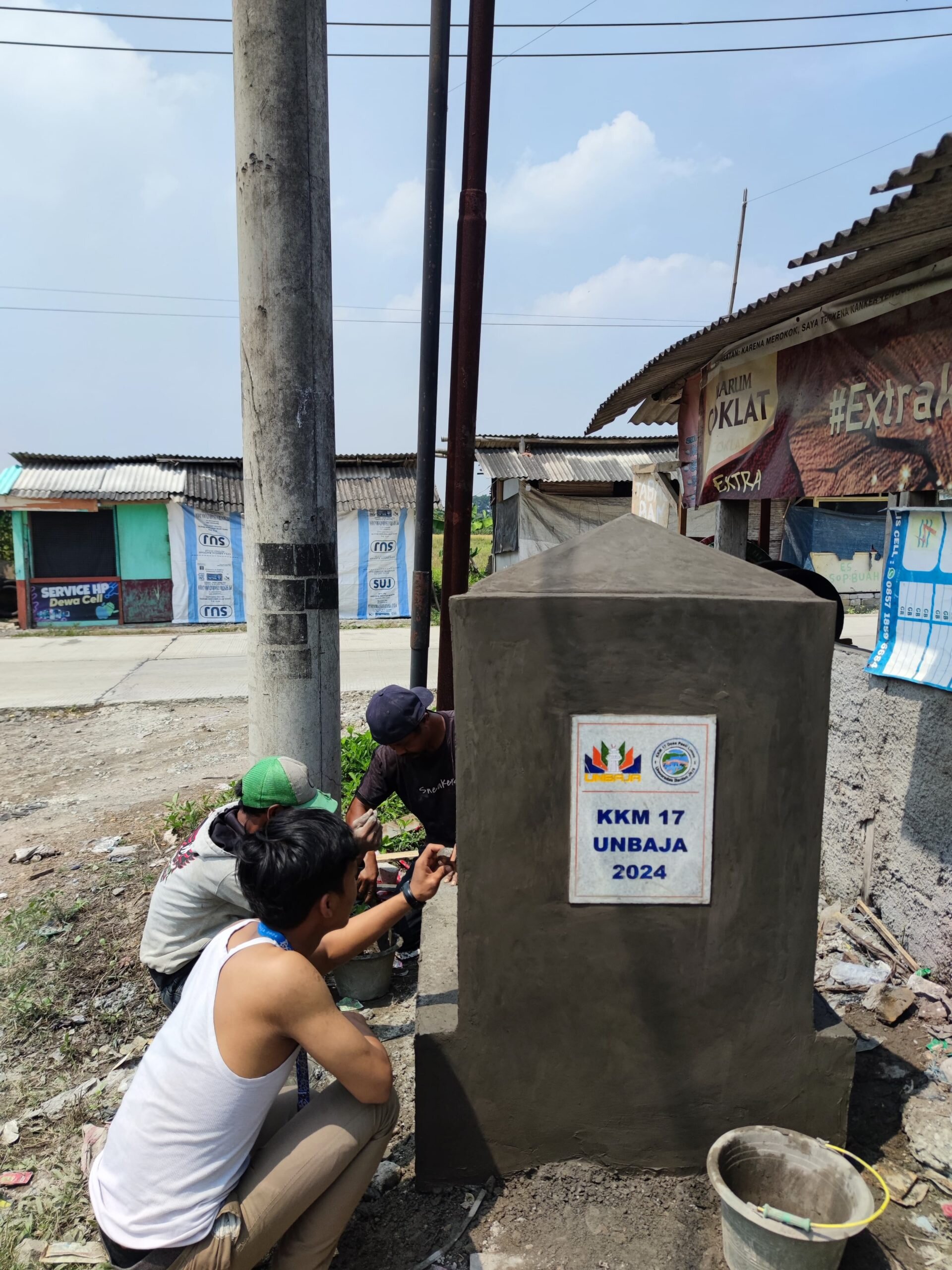 Di sore hari, peserta laki-laki KKM 17 terlibat dalam finishing tugu pembatas desa. Aktivitas ini merupakan bagian dari upaya mempercantik dan merawat fasilitas umum di sekitar desa sebagai wujud kontribusi KKM 17 terhadap masyarakat.