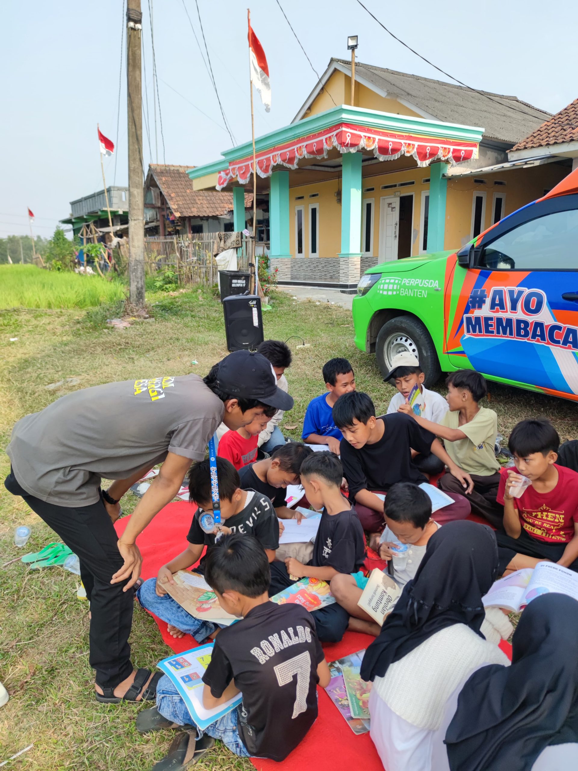 Perpustakaan keliling tersebut menghadirkan berbagai macam buku, mulai dari buku cerita anak, buku pendidikan, hingga buku-buku umum yang menarik perhatian masyarakat. Antusiasme warga terlihat dari banyaknya anak-anak dan remaja yang berkumpul dan membaca buku bersama. Beberapa anggota KKM juga turut membantu dengan mengadakan sesi membaca bersama dan permainan edukatif yang melibatkan buku-buku yang tersedia.