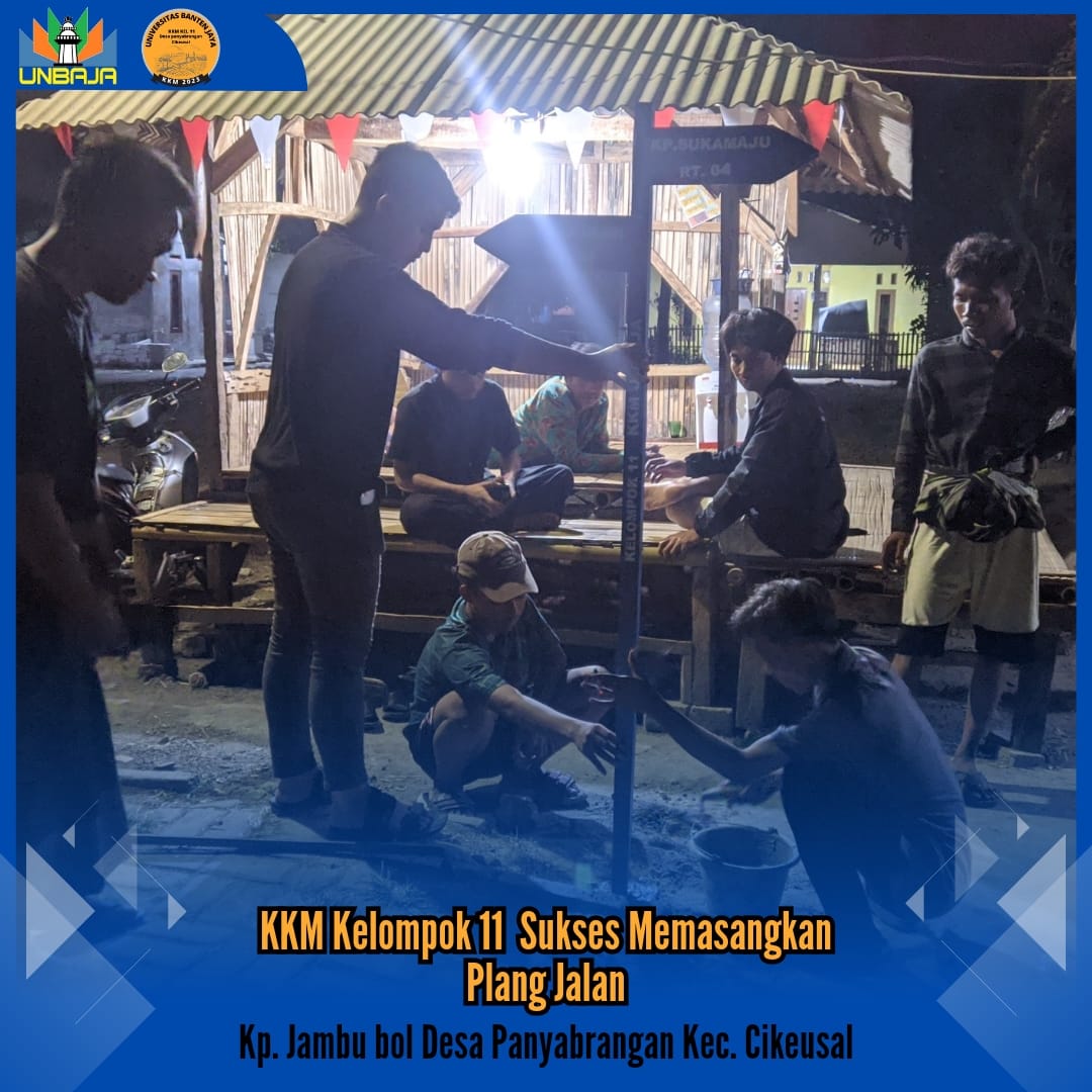 Serang, 20 Agustus 2023, KKM kelompok 11 UNBAJA melakukan pemasangan plang jalan di Kp. Jambu Bol RW.01. Inisiatif ini bertujuan untuk memberikan arahan yang jelas, dan memfasilitasi mobilitas masyarakat di wilayah tersebut.