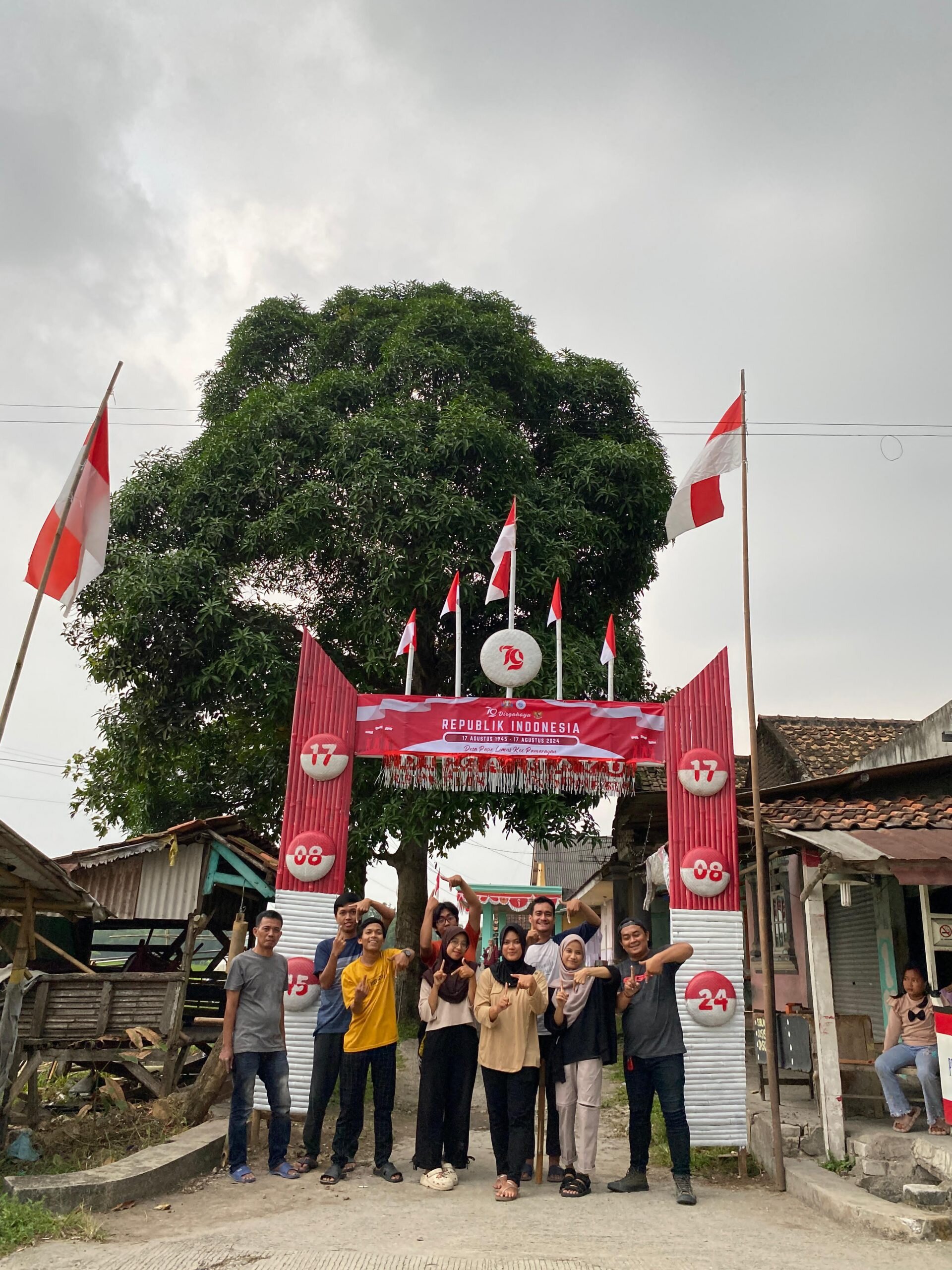 Setelah menyelesaikan kegiatan di musolah , siang harinya seluruh anggota kelompok 17 bersama-sama menyelesaikan pembuatan gapura yang menjadi bagian dari persiapan acara Hari Kemerdekaan yang akan datang. Setelah gapura tersebut selesai, mereka segera melanjutkan dengan pemasangan gapura di lokasi yang telah ditentukan.