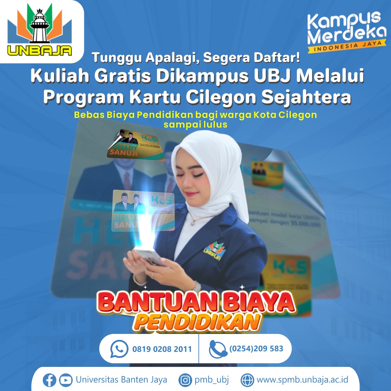 Pendaftaran program kuliah gratis melalui kartu cilegon sejahtera di UBJ sudah bisa dilakukan di awal bulan ini, pendaftaran dapat dilakuakn secara langsung dengan mendatangi kantor kami di Kampus 1 yang berlokasi di Jl Ciwaru raya No 73, Warung Pojok atau di Kampus 2 di Jl Syekh nawawi albantani No 2, Kampung boru. Universitas Banten Jaya menjadi salah satu kampus terpilih oleh pemerintah Kota Cilegon karena memiliki reputasi yang sangat baik di mata masyarakat karena telah banyak melahirkan lulusan-lulusan yang banyak terserap di pasar industri dan juga instansi pemerintah dan menjadi kampus yang telah lama berdiri di Kota Serang lebih dari 20 tahun.