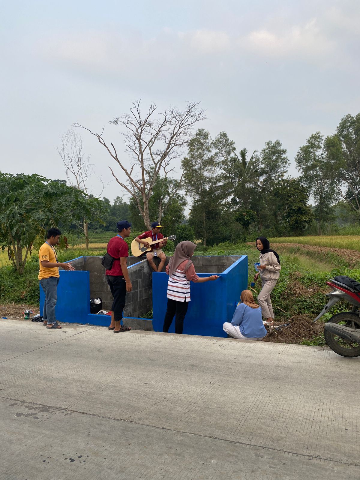 Pengecatan bak sampah dilakukan dengan penuh semangat oleh seluruh anggota kelompok. Bak sampah yang mereka cat akan diserahkan kepada masyarakat dalam beberapa hari ke depan, bersamaan dengan upaya kampanye kebersihan yang telah direncanakan.