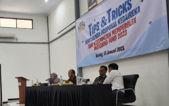 Lembaga Pengembangan, Penelitian dan Pengabdian Pada Masyarakat (LP3M) Universitas Banten Jaya gelar Coaching Proposal Kedaireka dengan menghadirkan Dr. Ing Muhammad Iman Santoso, M.Sc dan Dr. Rudiyansyah Toib, SE.,MM. sebagai Pemateri untuk memperoleh Program Matching Fund 2023 yang diselenggarakan di Teras Meeting UNBAJA pada Jumat 13 Januari 2023. Coaching proposal kedaireka memiliki ciri khas yakni bagaimana menyelaraskan hilirisasi kegiatan riset dan pengabdian perguruan tinggi dengan kebutuhan pengguna dalam hal ini bisa NGO, Pemerintah Daerah, Pemerintah Pusat serta Dunia Usaha dan Dunia Industri (DUDI). Urgensi riset dan pengabdian melalui Matching Fung 2023 adalah dihasilkanya dinamisasi inovasi yang bisa memberikan manfaat lebih kepada masyarakat.