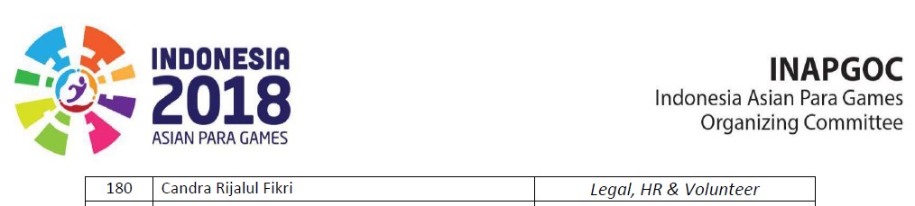 Kesuksesan relawan tersebut menarik minat salah satu mahasiswa Semester 5 Jurusan Teknik Informatika Fakultas Ilmu Komputer, Universitas Banten Jaya, Candra Rijalul Fikri. Berdasarkan Surat Tugas Nomor ST.9.14.22/INAPGOC/SET/LH/2018 yang ditandatangani oleh Sekretaris Jenderal Direktur Legal, HR & Volunteer Indonesia Asian Para Games Organizing Committee (INAPGOC) tertanggal 14 September 2018. Nama Candra Rijalul Fikri, berada pada nomor urut 180.