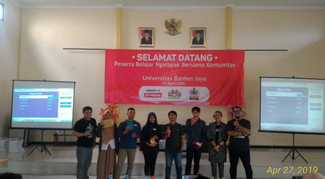 UNBAJA (27/4) Bertempat di auditorium UNBAJA Kampus 1, Komunitas Bukalapak Banten menggelar Belajar Ngelapak bersama mahasiswa dan dosen Universitas Banten Jaya, Sabtu (27/4)