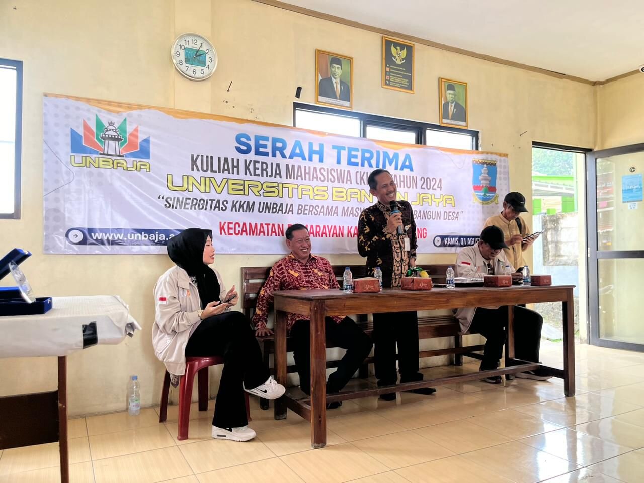 Sesampainya di Kecamatan Pamarayan, diadakan acara penerimaan peserta KKM UNBAJA oleh pihak kecamatan. Namun dikarenakan aula kecamatan sedang direnovasi, maka acara ini dipindahkan ke Kantor Desa Sangiang. Acara di Kantor Desa Sangiang tersebut dibuka oleh perwakilan panitia, Bapak Achmad Syarifudin, MT. Sambutan dari perwakilan DPL, Ibu Widyawati, ST., M.Kom, serta dari pihak Kecamatan yang diwakili oleh Sekretaris Kecamatan Pamarayan, Bapak Nana Sespri, juga menyampaikan sambutannya pada kesempatan tersebut. Sambutan terakhir disampaikan oleh Kepala Desa Sangiang, Bapak Sugeng Wahyono.