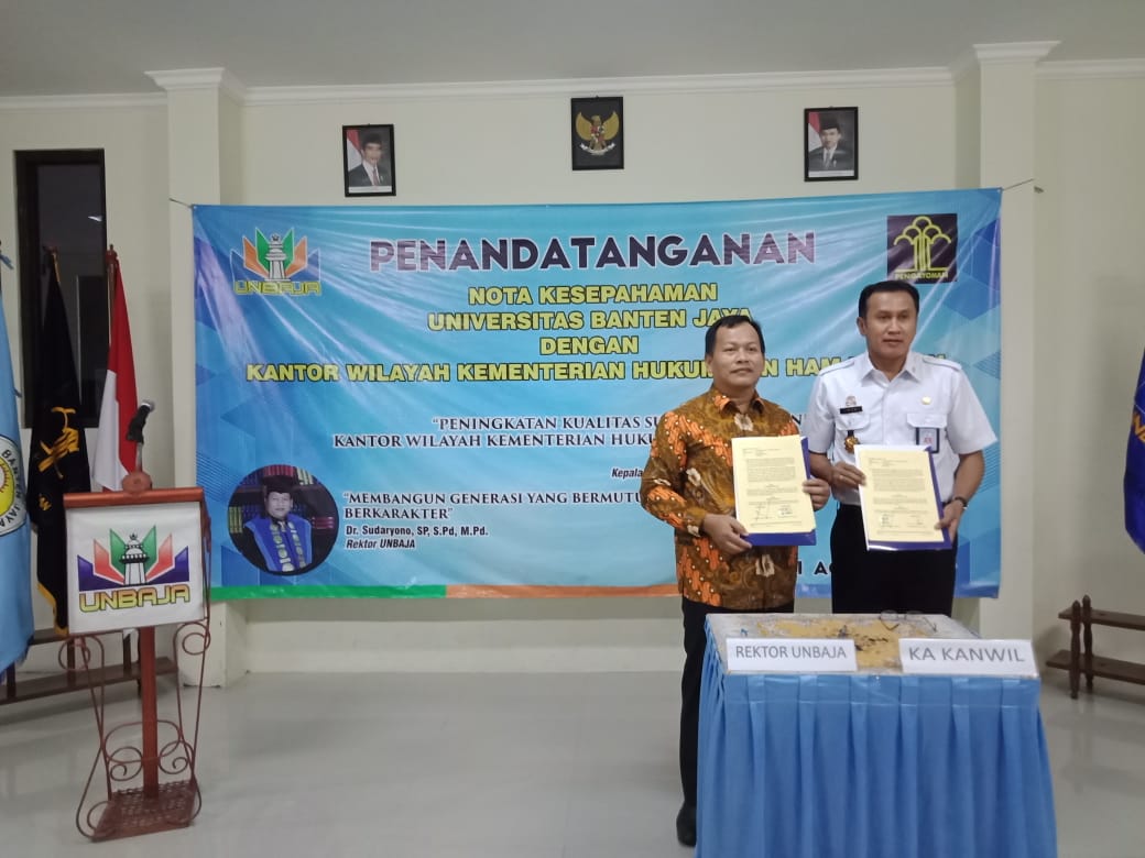 Nota Kesepahaman antara UNBAJA dengan KEMENKUMHAM Banten resmi ditanda tangani. Bertempat dikampus 2 UNBAJA, Serang 21/08/19.