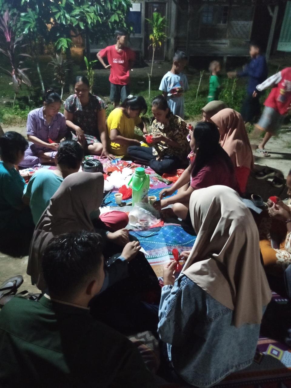 Hingga malam tiba aktivitas yang dilakukan oleh kelompok 19 belum selesai, dikarenakan telah mendekati hari kemerdekaan para warga mengajak mahasiswa untuk membantu tenaga maupun ide-ide kreatifitas untuk menghias halaman kampung jalajat dengan tema Kemerdekaan.