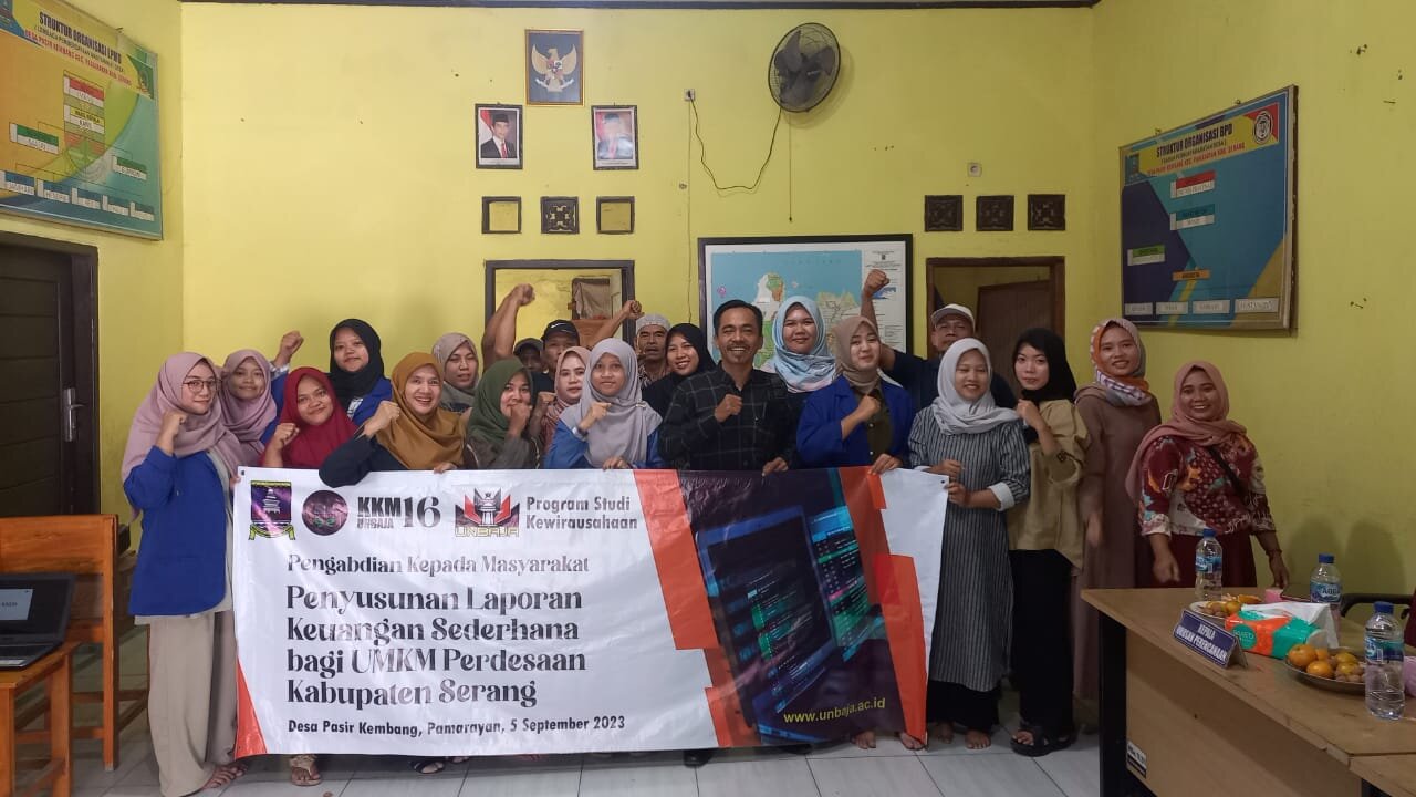 Serang, 5 September 2023 – Dosen Fakultas Ekonomi dan Bisnis Sev Rahmiyanti, SE, M. Ak memberikan pelatihan kepada kelompok UMKM di Desa Pasir Kembang dengan materi Penyusunan Laporan Keuangan Sederhana bagi UMKM Perdesaan.