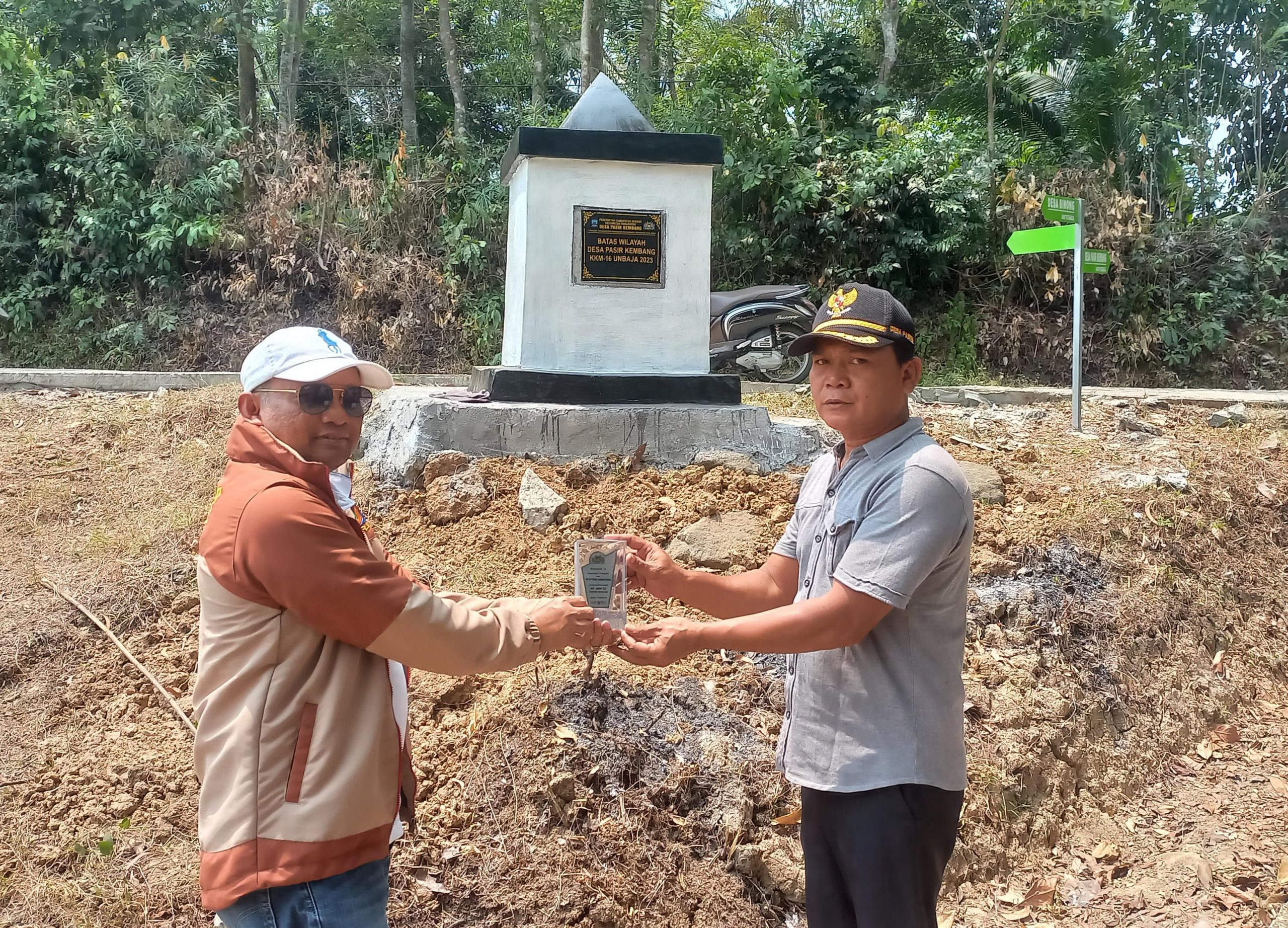 2 September 2023 – Ir. Ichwanul Yusuf, M.T selaku Dosen Pembimbing lapangan dari mahasiswa KKM kelompok 16 menyerahkan plakat sebagai kenang-kenangan telah mengikuti kegiatan KKM di Desa Pasir Kembang yang diserahkan kepada Kepala Desa Pasir Kembang Saepudin. Mahasiswa yang termasuk dalam kelompok KKM UNBAJA mengikuti kegiatan di Desa Pasir Kembang selama kurang lebih 1 bulan.