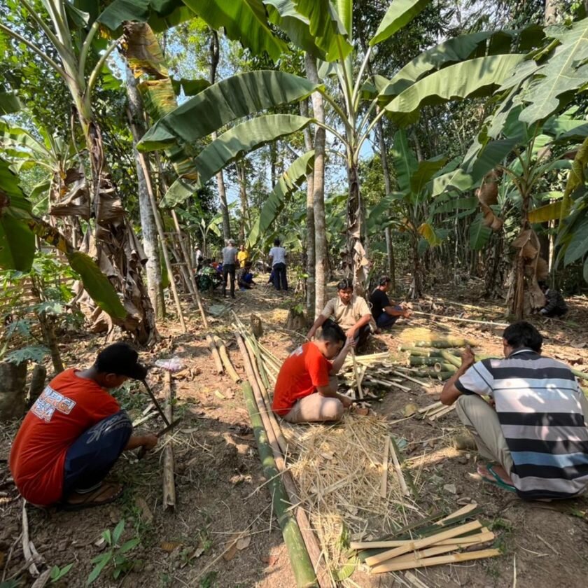 Peran Aktif Mahasiswa KKM 19 Membuat Pagar Bambu Untuk Pembatas Jalan Di Kampung Jalajat