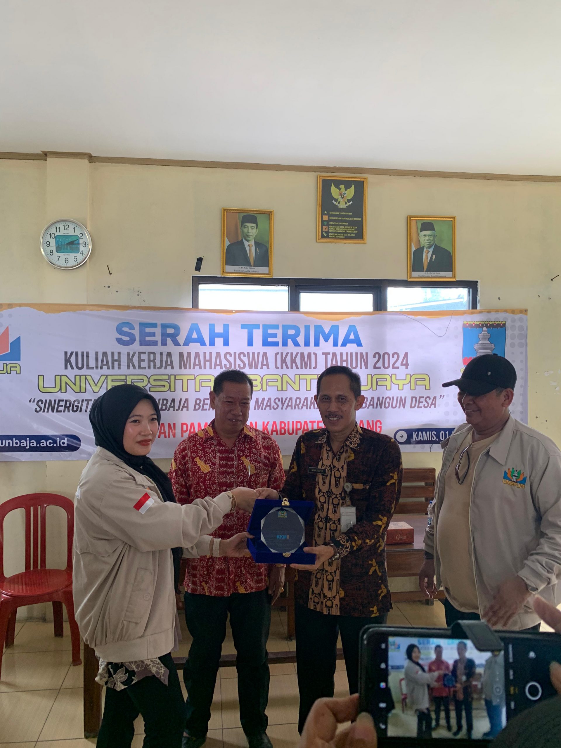 Acara serah terima ini diikuti oleh seluruh dosen pembimbing lapangan yang terdiri dari Ibu Budi Mulyati, S.Pd., M.Pd., Bapak Rizal Zulkarnain, SE., MM, Ibu Fida Asfia, S.KM., M.K.M., Ibu Huswatun Hasanah, M.Pd., Ibu Reni Febriani, Bapak Ahmad Surahmat, ST., MM., dan Ibu Widyawati, S.Kom., ST., M.Kom. Acara ini juga dihadiri oleh panitia KKM Universitas Banten Jaya 2024 dan perwakilan mahasiswa dari masing-masing kelompok.