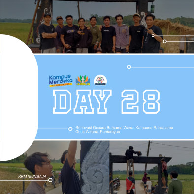 Memasuki hari ke-28 program Kuliah Kerja Mahasiswa (KKM) Universitas Banten Jaya (UNBAJA), kelompok 19 melanjutkan kegiatan renovasi gapura Kampung Ranca Lame bersama para pemuda setempat. Kegiatan ini menjadi salah satu upaya nyata untuk memperbaiki dan memperindah akses utama kampung sekaligus mempererat hubungan antara mahasiswa dan masyarakat setempat. Pada hari ke-28 ini, fokus renovasi adalah penyelesaian tahap akhir pengecatan dan penambahan ornamen pada gapura. Para mahasiswa KKM UNBAJA bekerja sama dengan pemuda kampung untuk memastikan setiap detail dikerjakan dengan rapi dan teliti. Mereka juga melakukan pengecatan ulang pada bagian yang memudar…