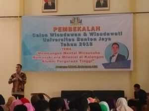 Calon Wisudawan & Wisudawati Universitas Banten Jaya Tahun 2018 diberikan pembekalan dengan Narasumber Dede Rohana Putra, SE, M.Si.