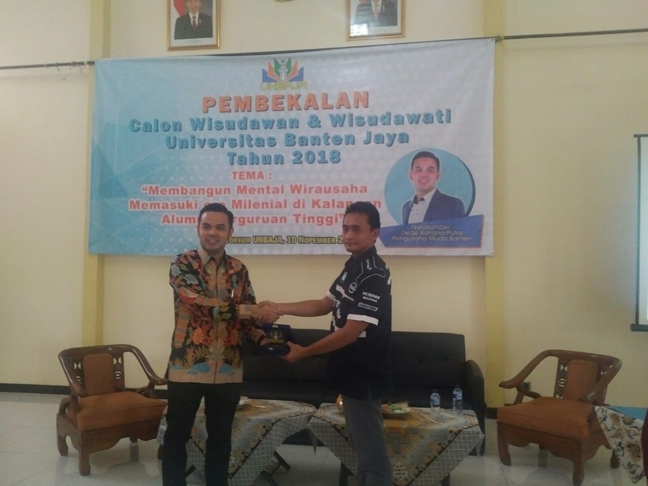 Tema yang diusung pada kegiatan pembekalan ini adalah membangun Mental Wirausaha Memasuki Era Milenial di Kalangan Alumni Perguruan Tinggi” di Auditorium Universitas Banten Jaya, Sabtu, 10 November 2018.