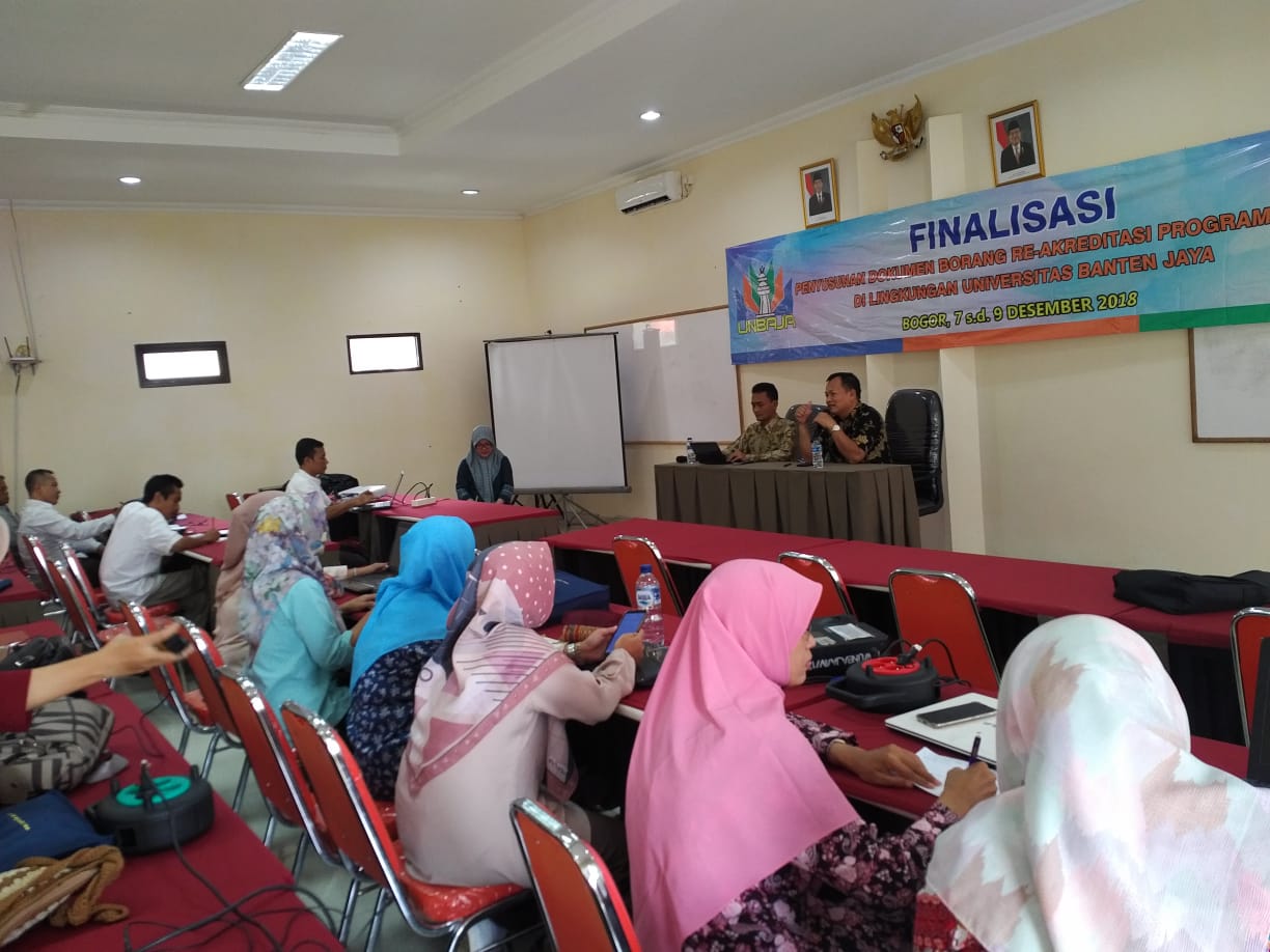 Bogor (7/12). Universitas Banten Jaya melaksanakan kegiatan Finalisasi Penyusunan Dokumen Borang Re-Akreditasi Program Studi di Lingkungan Universitas Banten Jaya. Kegiatan ini dilakukan untuk percepatan re-akreditasi dan meningkatkan Status Akreditasi seluruh program studi di Universitas Banten Jaya.