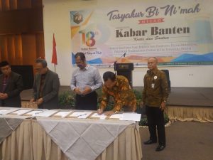 Rektor UNBAJA, Dr. Sudaryono yang langsung mendantangani nota kesepahaman ini, mengucapkan selamat kepada Kabar Banten yang telah berusia 18 tahun, semoga Kabar Banten dapat menjadi mitra UNBAJA dalam berbagai kesempatan terutama dalam membangun kemampuan menulis masyarakat Banten sehingga masyarakat Banten memiliki Literasi yang baik, tuturnya.(TAM)