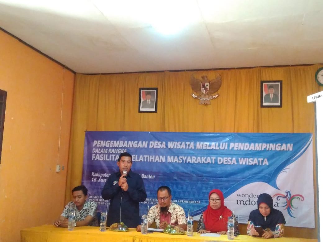 Sawarna (15/6) Berlokasi di Sawarna Kecamatan Bayah Kabupaten Lebak Provinsi Banten digelar acara Pengembangan Desa Wisata Melalui Pendampingan  dalam rangka Pelatihan Masyarakat Desa Wisata  yang dilaksanakan di aula Desa Sawarna Kecamatan Bayah Lebak Banten Sabtu, (15/05/2019).