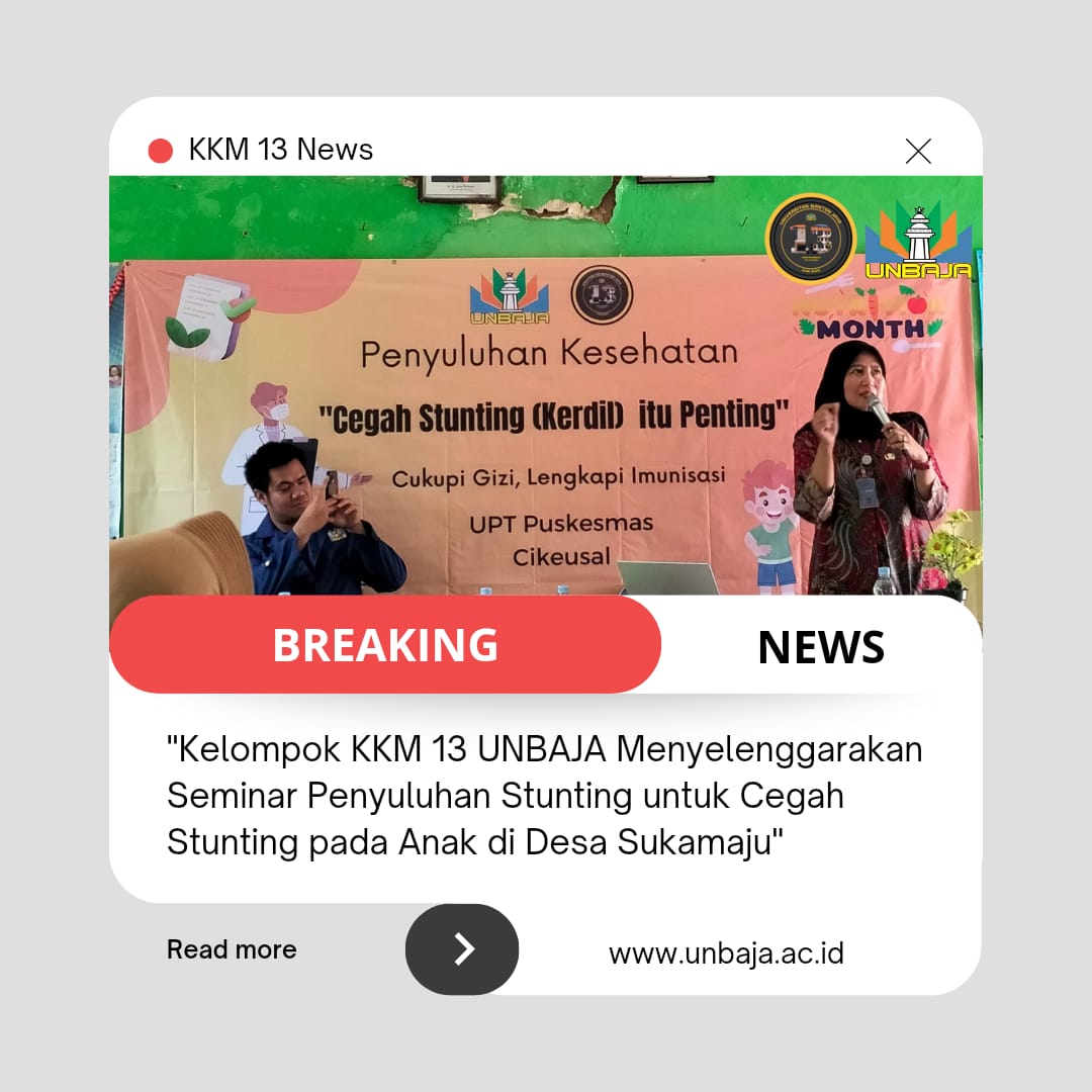 Read MoreKelompok KKM 13 Menyelenggarakan Seminar Penyuluhan Stunting untuk Cegah Stunting pada Anak Di Desa Sukamaju