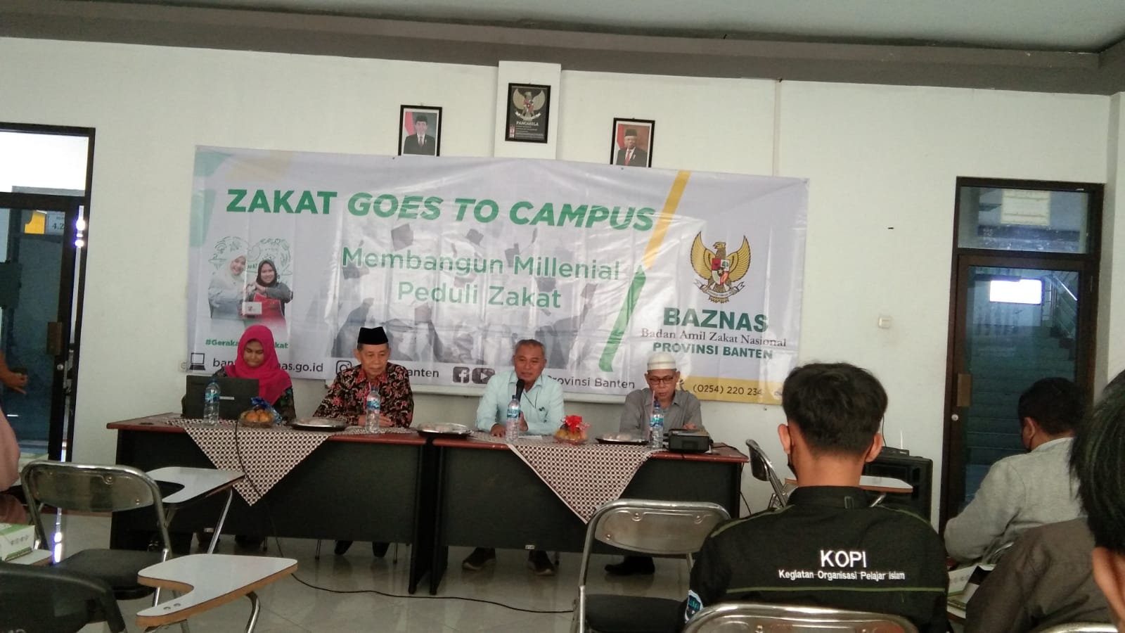 Serang – Badan Amil Zakat Nasional (BAZNAS) Provinsi Banten yang dibentuk pemerintah berdasarkan Keputusan Menteri Agama RI No. 118 Tahun 2014 memberikan sosialisasi zakat goes to campus untuk membangun generasi milenial peduli zakat di ruang aula kampus 1 Universitas Banten Jaya pada Kamis 15/09/2022.