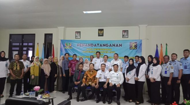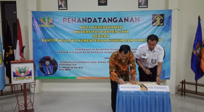 Nota Kesepahaman antara UNBAJA dengan KEMENKUMHAM Banten resmi ditanda tangani. Bertempat dikampus 2 UNBAJA, Serang 21/08/19.